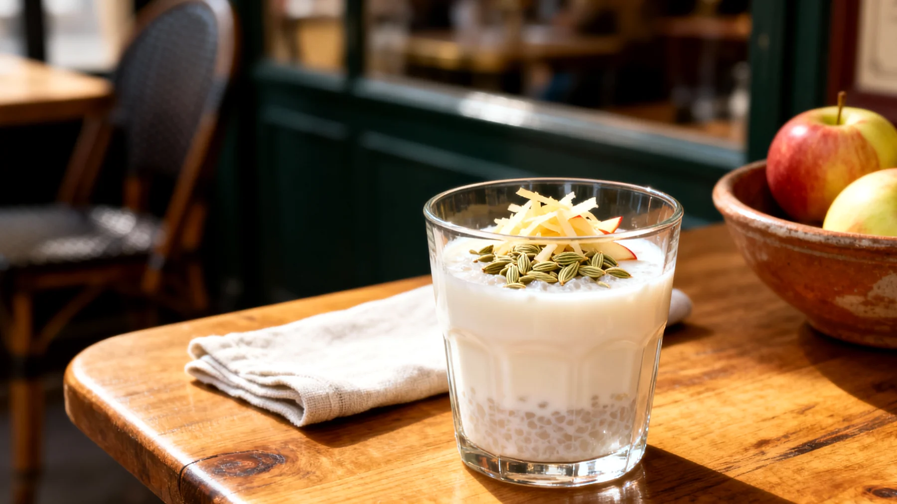 Ajouter la pomme râpée au dernier moment préserve ses enzymes sensibles à l’oxydation. Une demi-pomme de variété légèrement acidulée comme la Granny Smith apporte une fraîcheur gustative qui équilibre l’acidité naturelle du kéfir, créant une préparation agréable au palais même pour ceux qui découvrent les produits fermentés.