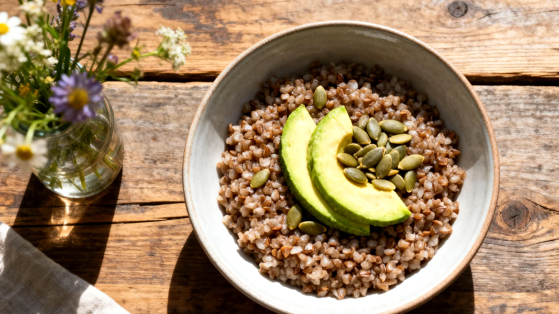Au-delà de son profil protéique, le sarrasin contient du tryptophane, cet acide aminé précurseur de la sérotonine, le fameux neurotransmetteur du bien-être. Consommé au petit-déjeuner avec des glucides, il peut soutenir votre humeur via cette voie métabolique, en association avec les vitamines du groupe B présentes dans la graine.